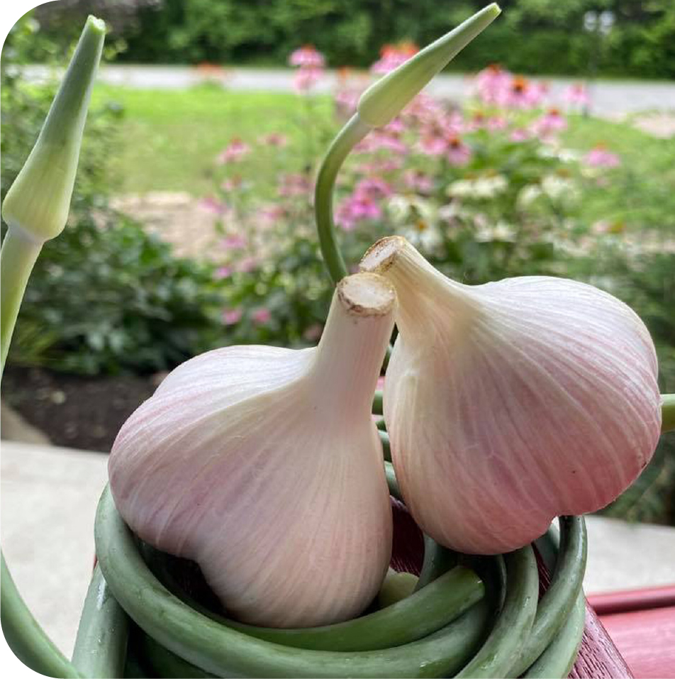 Nous avons des produits transformés à base de fleur. Vers la Saint-Jean-Baptiste et jusqu’à la fin septembre, nous offrons la fleur d’ail fraîche.