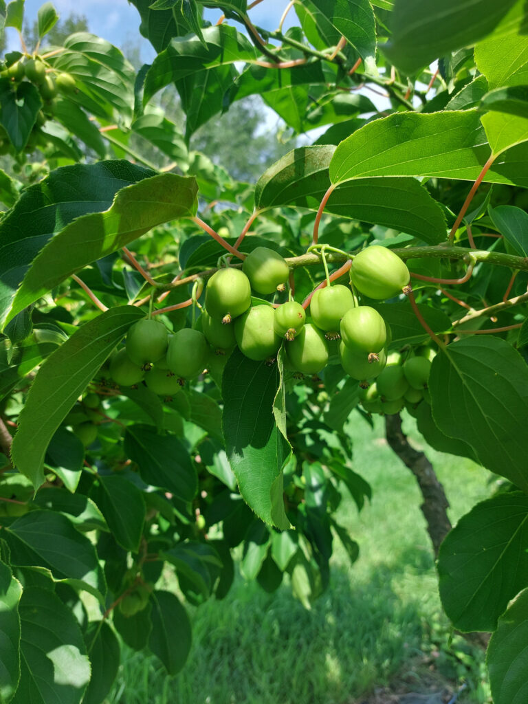 C’est en 2008 que nous nous sommes intéressés au mini-kiwi et en 2011 nous avons réalisé nos premiers essais en plein champ. Puis en 2015, nous avons implanté le verger actuel à Rigaud avec environ 400 plants. Une centaine de plants ont été ajoutés en 2025.